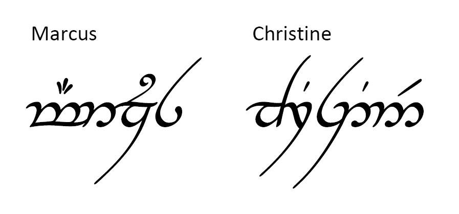 Meine natürlich NICHT übersetzen, sondern die Namen in elbischer Schrift schreiben! Danke!