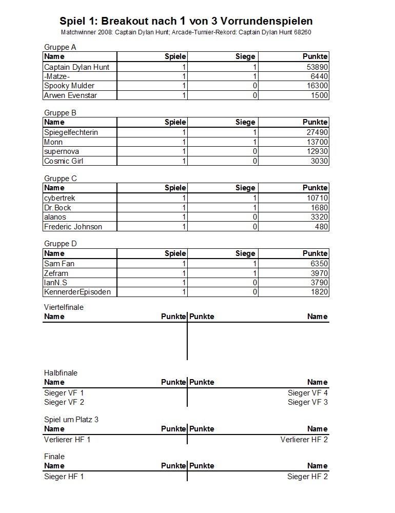 Arcade-Turnier II - Diskussion und Ergebnisse