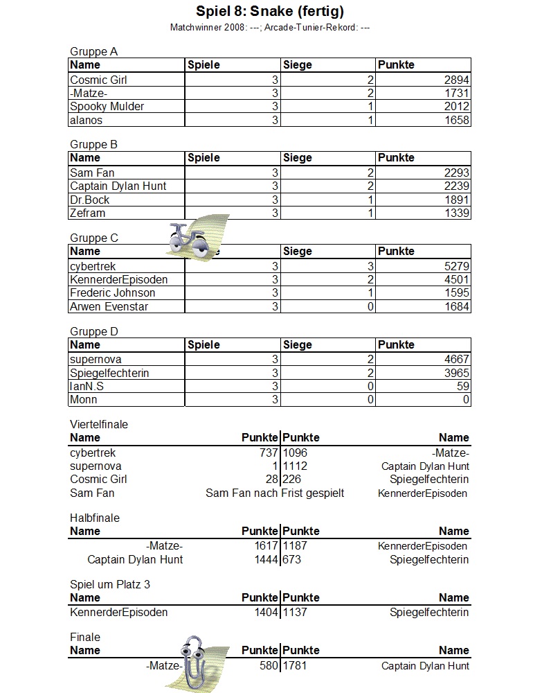 Arcade-Turnier II - Diskussion und Ergebnisse