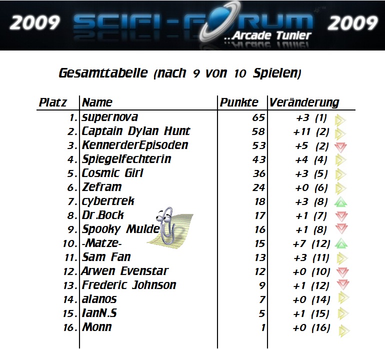 Zitat von Captain Dylan Hunt Beitrag anzeigenDie Tabellen:@Dylan:Zitat von Zefram Beitrag anzeigenWieso hast du mir denn +6 Punkte eingetragen