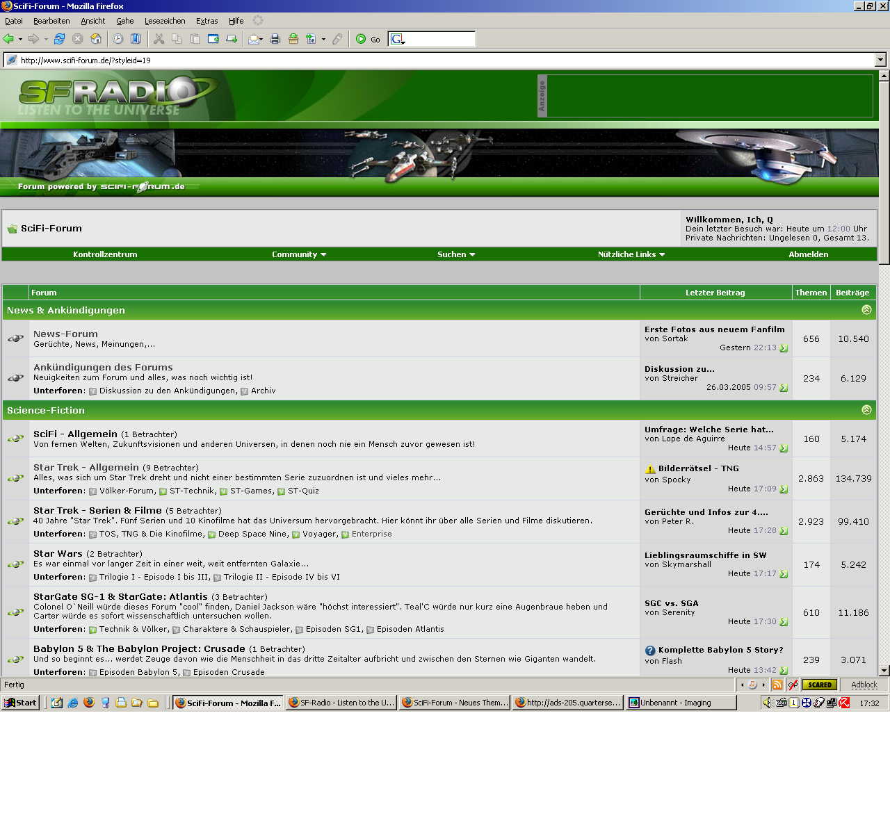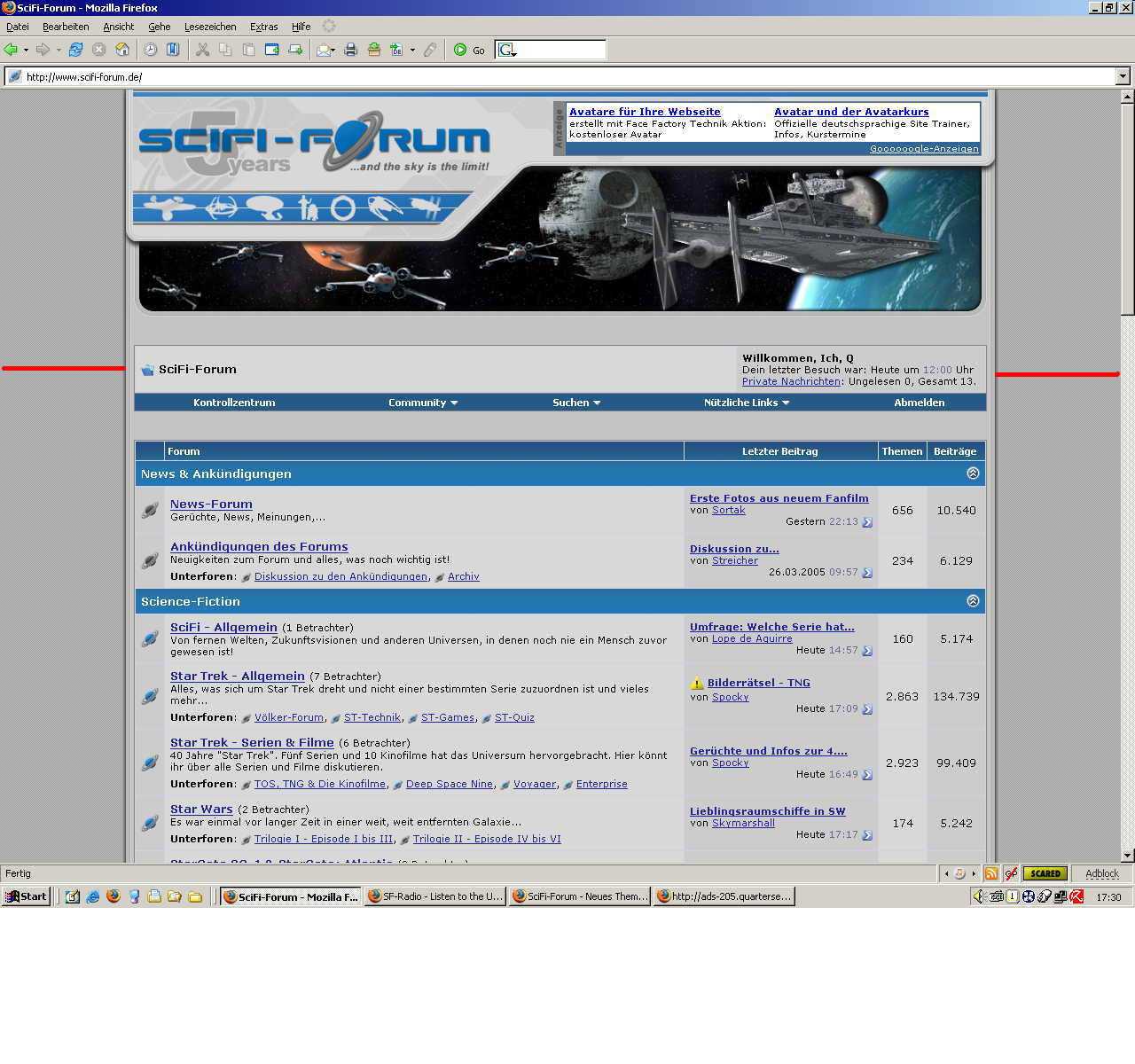 Ich habe auf meinen 17'' TFT ne Auflösung von 1280x1024, doch wohl ist der Hauptstyle noch auf niedrigerere Auflösungen(vielleicht noch 1024x768 oder so) eingestellt. Links und Rechts im maximierten Fenster hab ich graue Balken. Das gilt aber nur für den Hauptstyle und den Scifi Style. Im Q&A und SFRadio Style gehts wird der Platz ganz ausgenutzt.