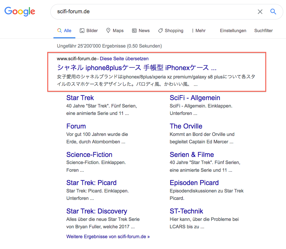 Interessant fand ich dabei übrigens folgendes wenn man bei Google nach "scifi-forum.de" gesucht hat: