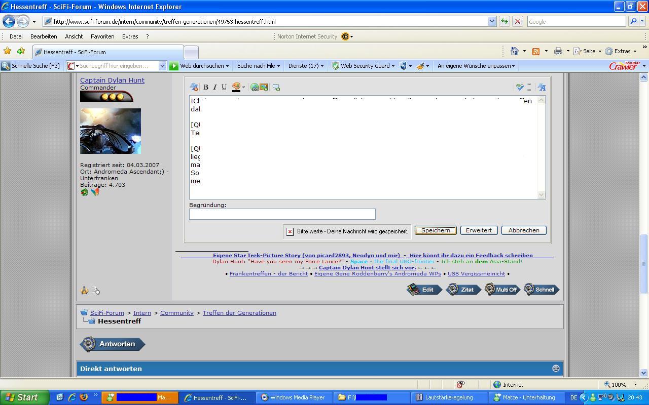 Ich schließe mich McWire hier an, wenn der Bedarf einer IG besteht kann man entweder hier, oder direkt per PN einen Mod fragen.Zitat von Dr.Bock Beitrag anzeigenVorerst ja.