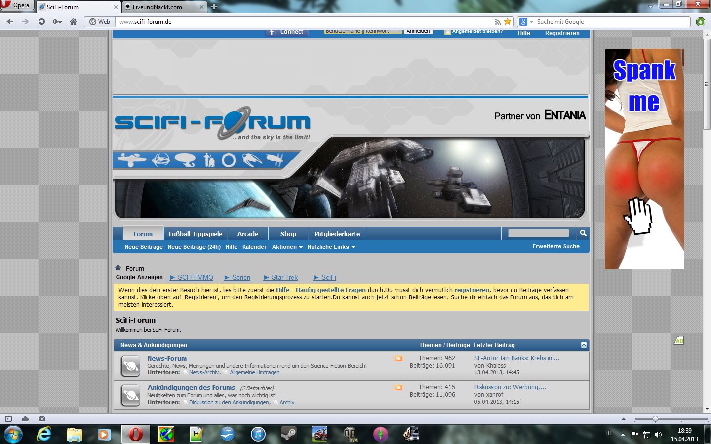 Diese ab18 Werbung ist nicht nur mit dem ie da. Auch mit dem Firefox kriegt man diese Werbung. Beim betreten des Forums ploppt direkt ein neuer Tab auf. Wie man auf dem Screen sehen kann. Es gibt noch ein paar weitere Spiele, Videos und Chats, die alle direkt auf die Seite (auf dem Screen der rechte Tab) führen. Bei jedem Seitenaufbau ploppt dieser Tab auf.Inmitten des ewigen Kreislaufs der Zeit, wird aus lauem Wind ein Sturm entstehen.