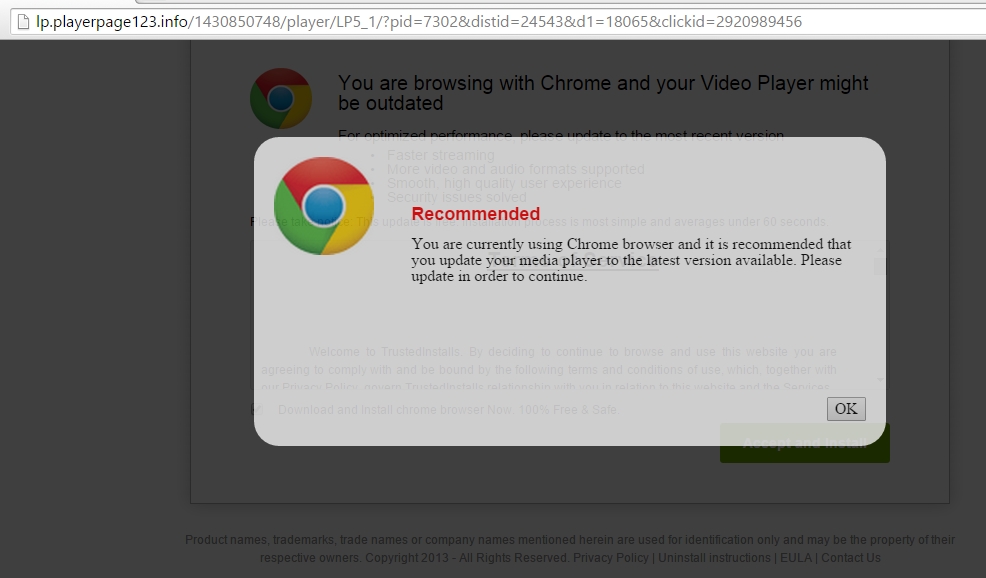 Welche Version von Chrome nutzt du denn? Eine Meldung, daß die Software auf deiner Seite ein Update benötigt, kann ein Hack sein, muss aber nicht. Auch viele namhafte Seiten wie youtube & co markieren genauso hartnäckig alte Browser-Versionen und kündigen den Support für ihre Seiten ab.