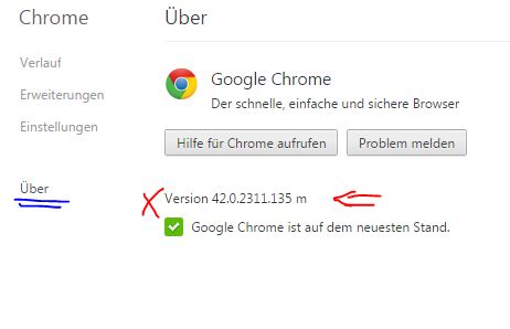 Welche Chromeversion du hast siehst du über: Einstellungen -> Über