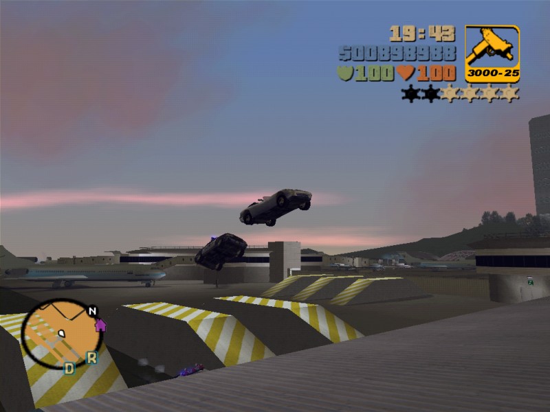 1. GTA 3: Verfolgungsjagd auf dem "Francis International Airport". Die Gesetzeshüter lassen sich auch durch Flugeinlagen nicht abschütteln...