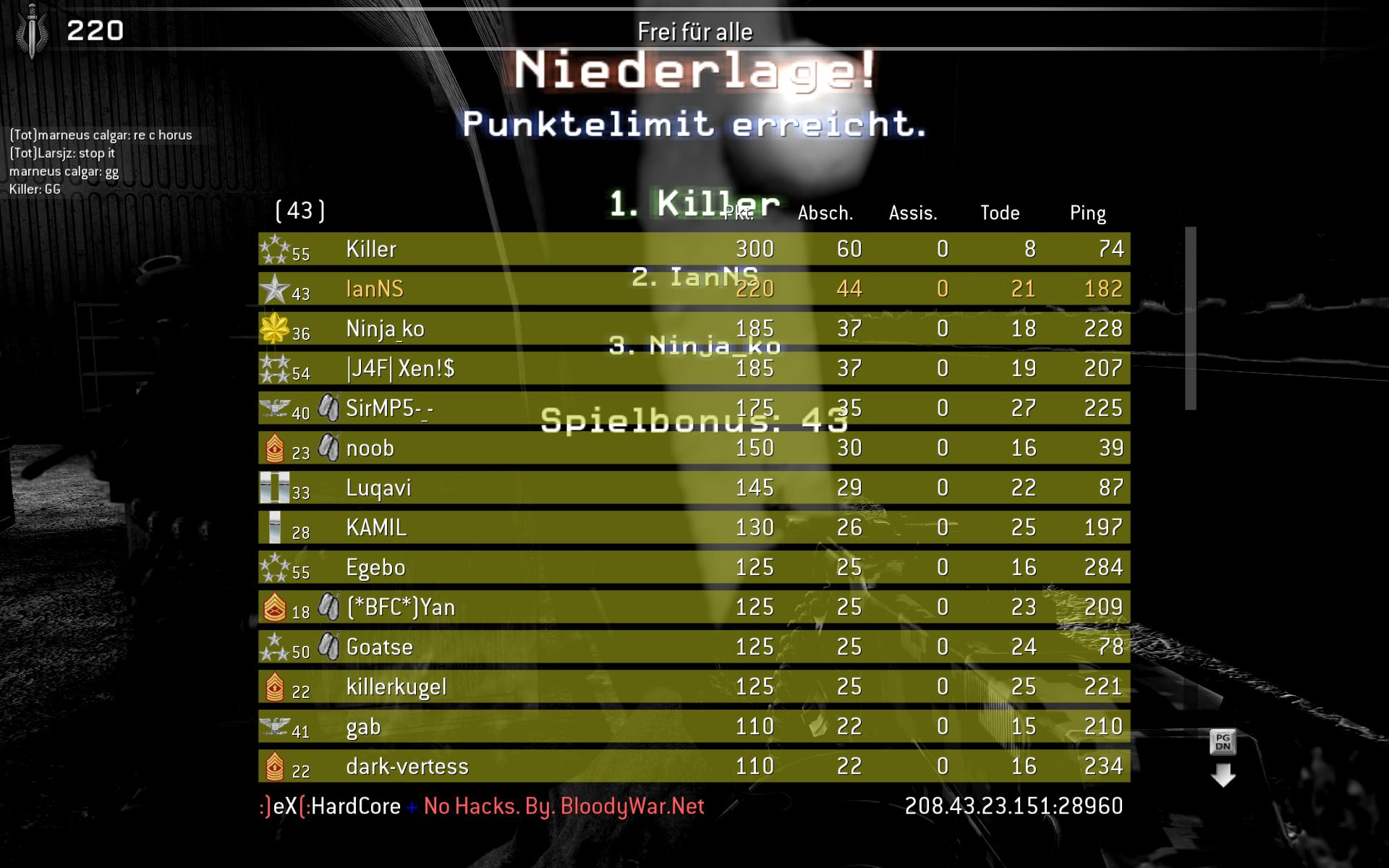 Auch wenn die Statistik nicht so gut ist, hier mal ein Screenie aus Cod:WaW