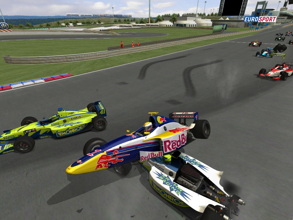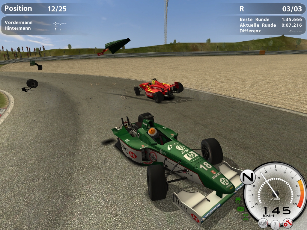Ich habe nach einiger Zeit mal wieder GTR Evolution gespielt. Bilder 1-2 zeigen das Ende des Melbourne Rennens. Nach der Zieldurchfahrt rast mir ein sich wild drehender Williams ins Heck. Bilder 3-5 zeigen den 1997er Williams Renault in Le Mans. Ich habe meinen Frontflügel verloren und hebe auf der Hunaudiéres ab.