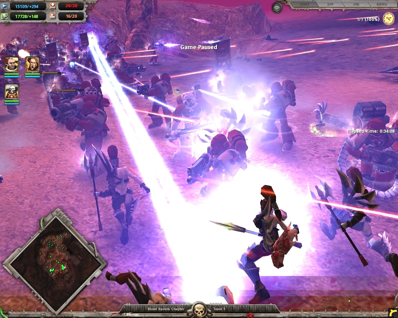 Die Screenshots sind ja alle noch von Dark Crusade ... inzwischen habe ich auch Soulstorm und Warcraft 3 plus Add-On durchgeprügelt. In den freien Tagen werde ich mal ein paar hübsche Shots davon raussuchen.