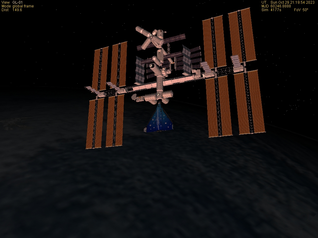 Das Erste ist aus der ISS, das Zweite ist die ISS mit angedocktem DeltagliderIV in der Morgendämmerung, das Dritte ist nochmal der DGIV beim Abdocken von einer Station am Mond. Das Vierte ist nochmal die ISS in ihrer Gesamtheit.