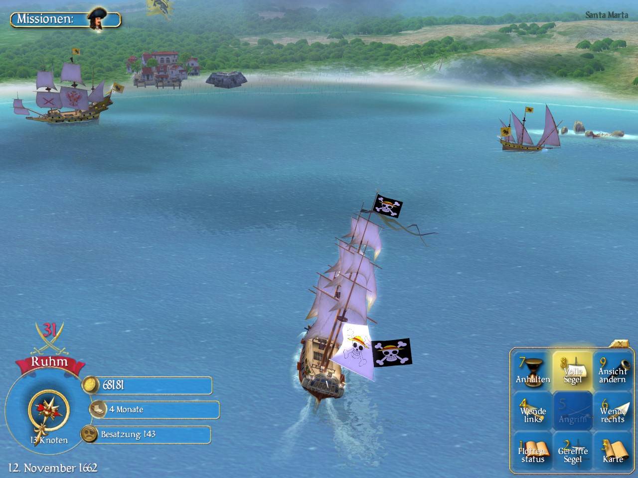 Von mir mal was aus Sid Meier's Pirates. Habe meine Flagge ein wenig verändert, und danach direkt ein neues spiel unter einem anderen Namen begonnen.