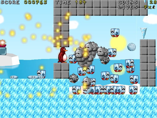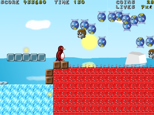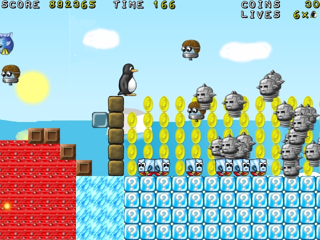 So, hab mal ein Jump 'n' Run Spiel rausgesucht, Supertux, mit dem Logo von Linux .