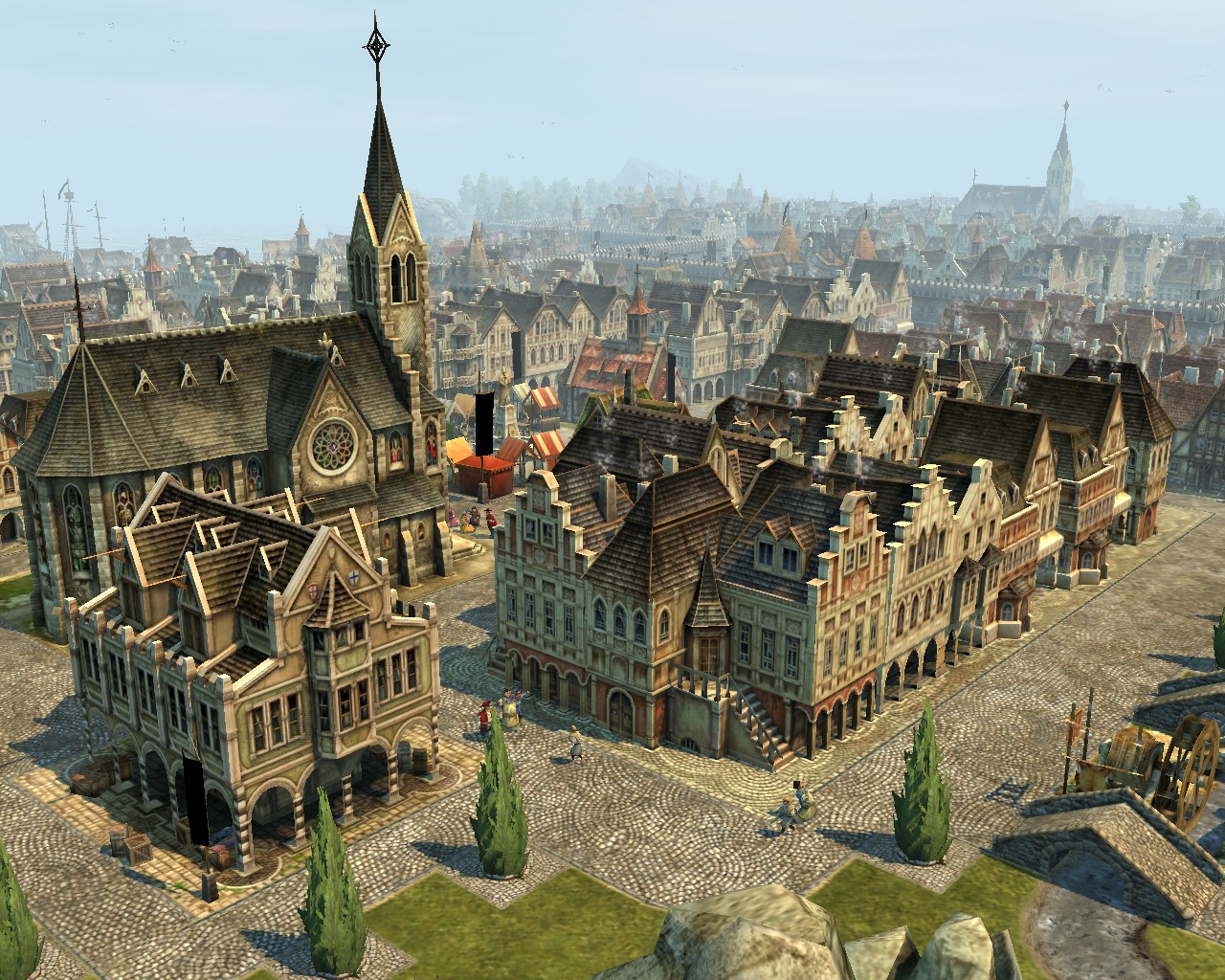 Dann solltest aber einige der Marktplätze abreißen. Was macht das für einen Sinn, drei Marktplätze fast direkt aneinander zu bauen? Das ist pure Platz- und Geldverschwendung. Auch die innerstädtischen Mauern sind übertrieben.
