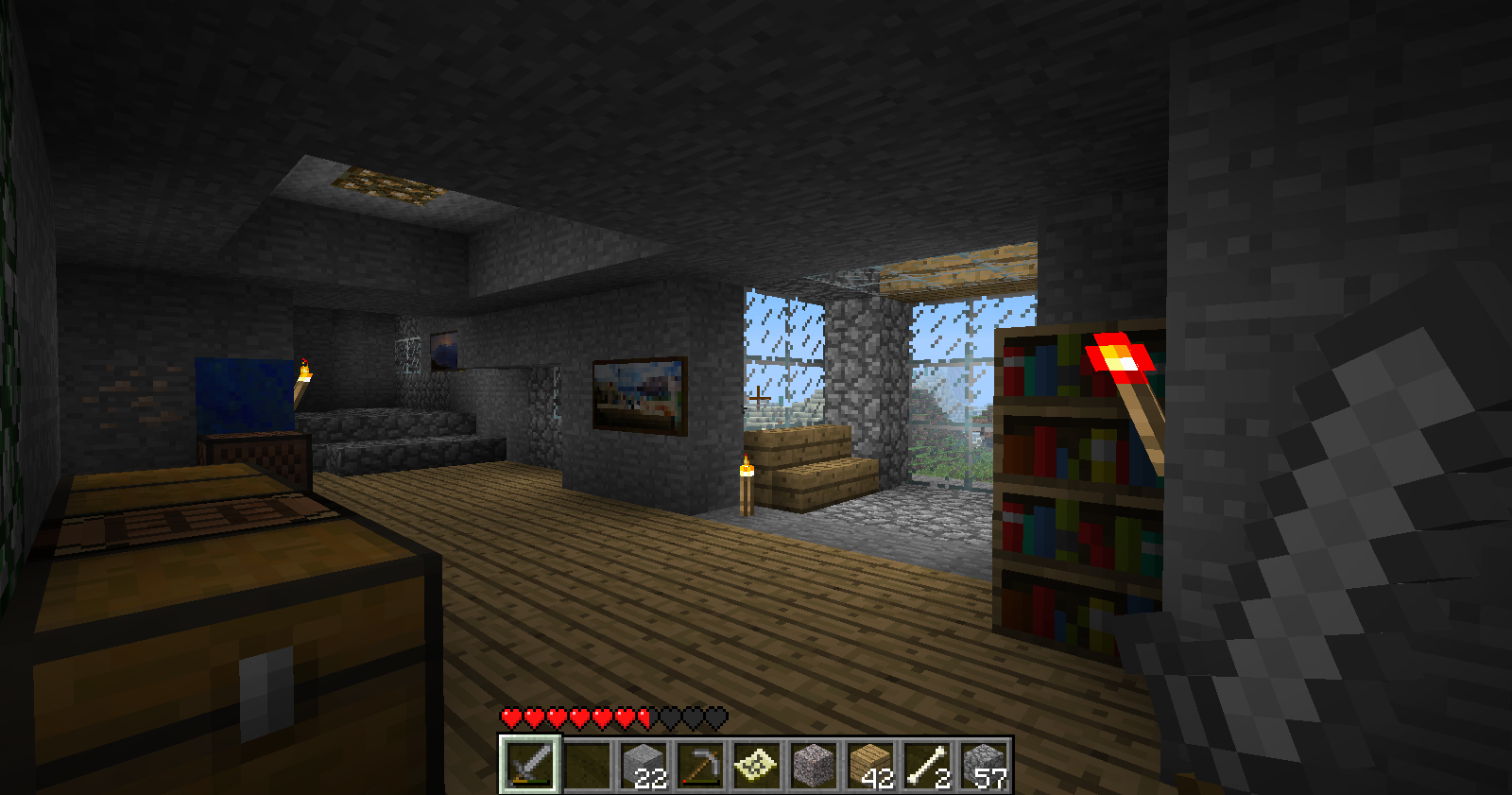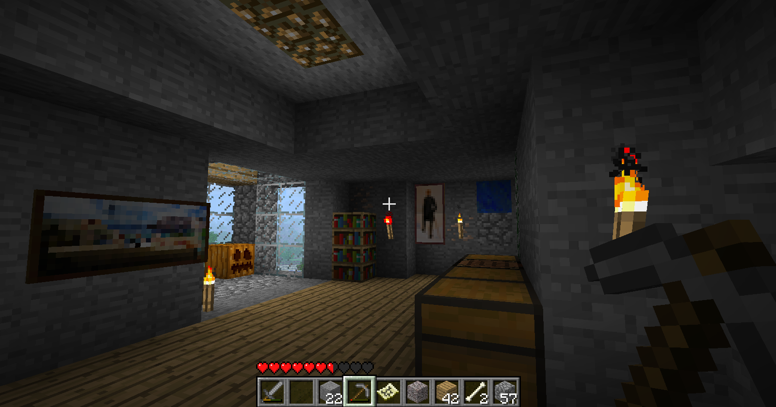 bislang ist dieser ort leider recht nutzlos. ich basel ab und an an meinem "wasser system". hebel umlegen und schon steht alles ums haus herrum unter wasser. dieses treibt die monster dann in ein loch, welches ich an meine mine angeschlossen hab. dort werden sie dann per leitertrick mit lava geröstet und ich kann items sammeln wenn ich nicht am PC bin.
