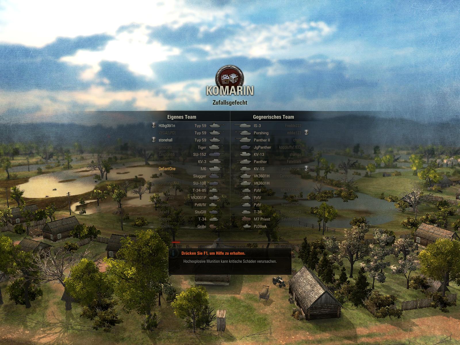 Ich zitier mich mal selber,weil ich wohl "recht" hatte..letztes Game grade mit dem T20..wir hatten nen E-100 im Team gefolgt von nem Tiger II..Zitat von [OTG]Marauder Beitrag anzeigenIch bin grade was am ausprobieren und zwar wegen der Typ59 "Horden"..ich spiele seit Freitag dann doch den T-20 und mir sind damit diese "Horden" noch nicht begegnet. Paralel dazu natürlich weiter M24 und E8,wo sie mir weiterhin begegnen...ich schliesse daraus das es mit der Anzahl der Spiele zusammenhängt die man auf nem Panzer hat.Ich werd das mal ausprobieren bis mir beim T-20 diese Horden ebenfalls begnen. Wenn das dort genauso läuft ab einer bestimmten Anzahl an Spielen heisst das ja nichts anderes als das der MM die "normalen" 59er (die ja vereinzelt auftauchen,was ja auch ok ist) mit "neukunden" auffüllt,so das dann diese "Meuten" entstehen..