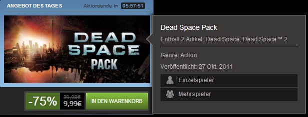 Also Dead Space für 2,49 € habe ich gefunden, aber Dead Space 2 hat Steam (wenigstens bei mir) nicht einmal im Angebot.
