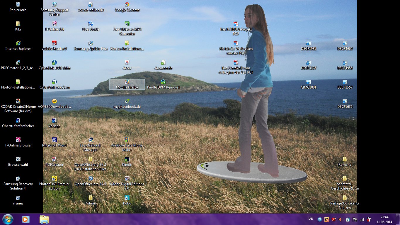 Ich habe meistens Diashows als Desktop-Hintergrund. Momentan eine mit Bildern von futuristischen Gebäuden, Landschaften oder anderem, was nach meiner Lieblings-Buchreihe ,,Ugly-Pretty-Special" aussieht.