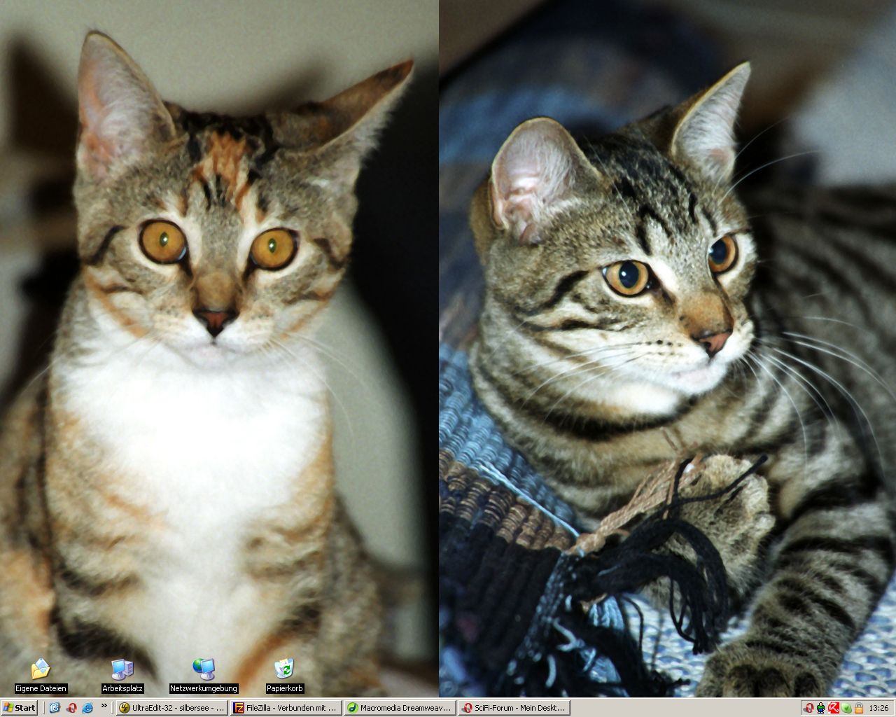 Mein aktueller Desktop. Taskleiste hab ich mal ausgeblendet, muss ja nicht jeder sehen was ich für kriminelle Sachen mache.