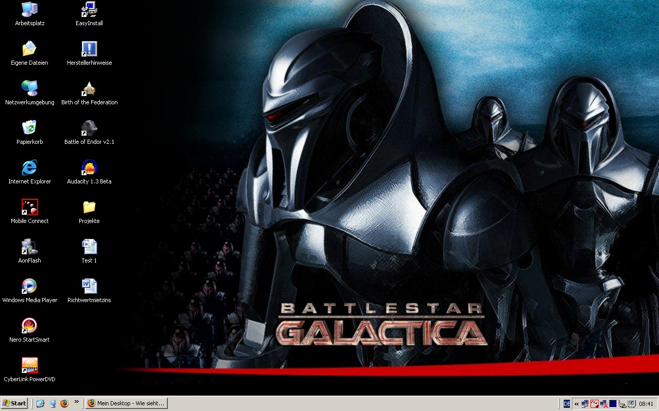Ausnahmsweise mal der Desktop meines Laptops. Da die BSG-Staffelbox 2.1 bald erscheint, habe ich mir einen dazupassenden Hintergrund ausgesucht - optimiert für den 16:10-Bildschirm.
