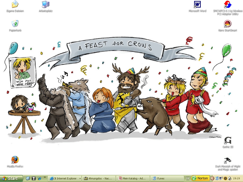 Da ich momentan ganz den Song of Ice and Fire Büchern verfallen bin, hab ich meinen Desktop mal wieder angepasst und mit einem FanArt von Winterfell.org geschmückt:Los, Zauberpony!