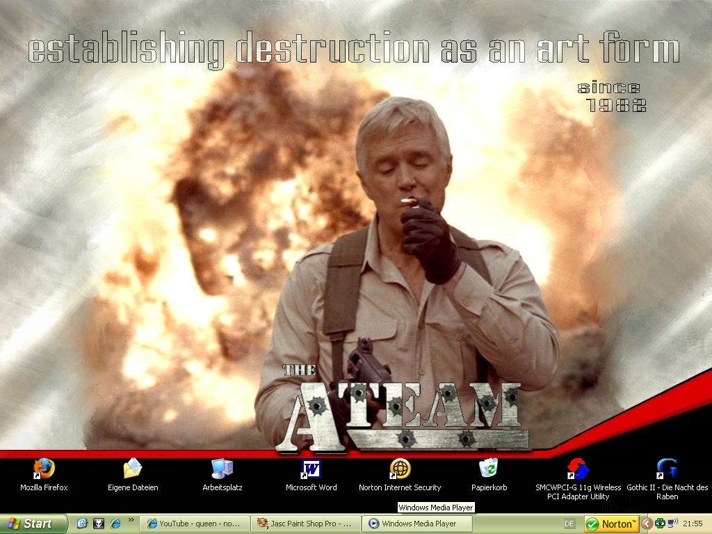 Nachdem ich gestern gezwungen war, meinen PC neu aufzusetzen, sind nun sogar noch weniger Symbole als üblich auf meinem Desktop. Dafür habe ich aber ein neues Wallpaper als Blickfang gebastelt.