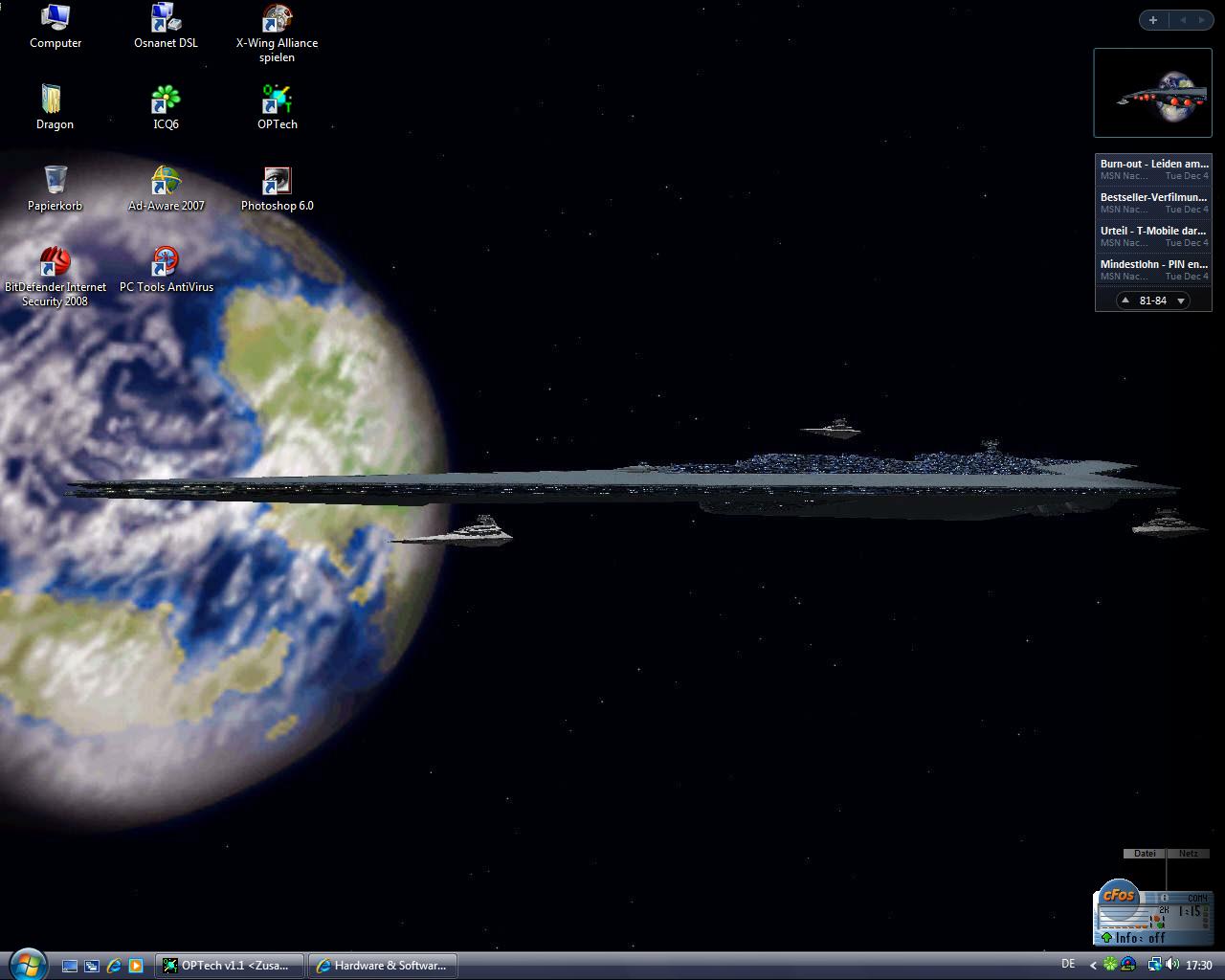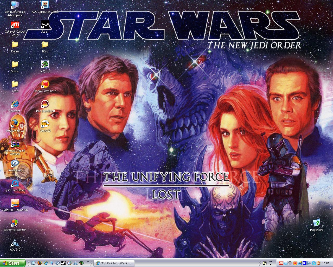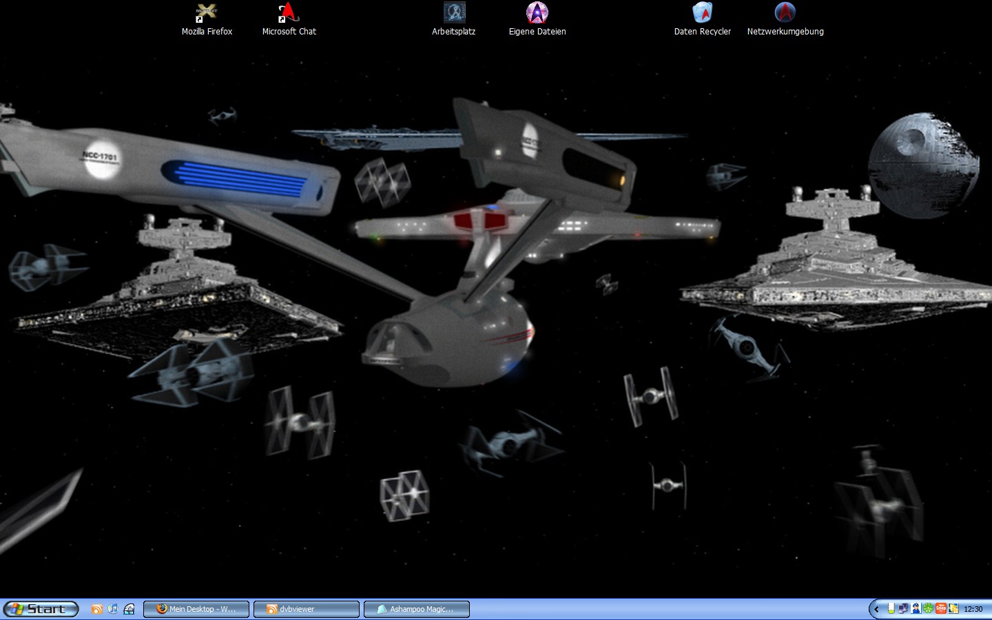 So sieht mein aktueller Desktop aus, mit einem schönen Star Wars vs. Star Trek Bild.