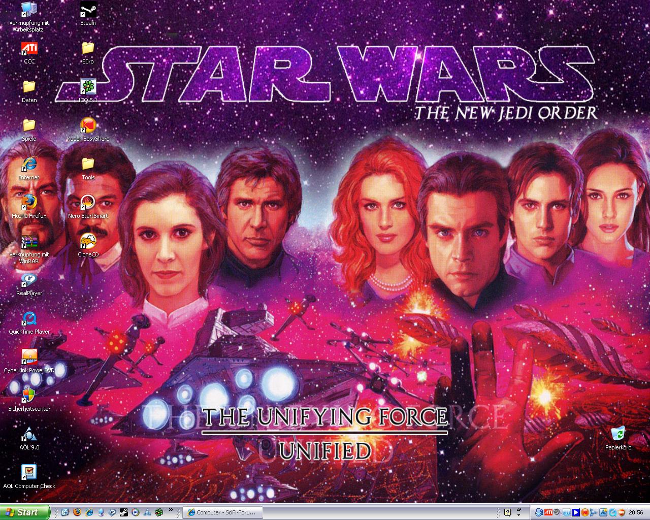 Hier mal mein Neuer. Hintergrundbild müsste ich irgendwo bei deviantart gefunden haben. Hab festgestellt, dass ich in letzter Zeit nur Natur-Hintergrundbilder hatte und nach so vielen ästhetischen Fotos von Bäumen und feuchten Gräsern muss dann doch mal was anderes her.