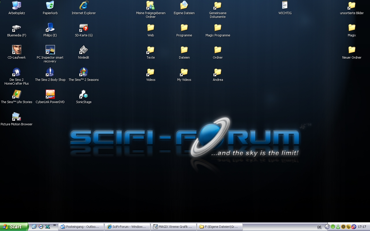 Hier mal mein Neuer. Hintergrundbild müsste ich irgendwo bei deviantart gefunden haben. Hab festgestellt, dass ich in letzter Zeit nur Natur-Hintergrundbilder hatte und nach so vielen ästhetischen Fotos von Bäumen und feuchten Gräsern muss dann doch mal was anderes her.