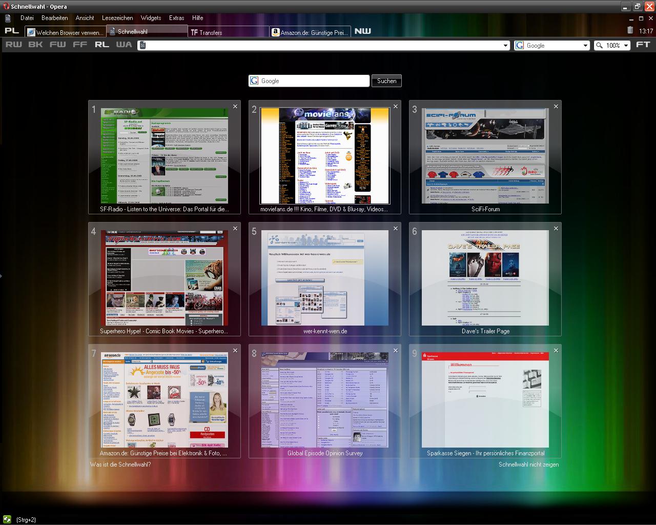 Außerdem gibt's ja noch die Schnellanwahl. Und gerade deswegen zum Zweiten: Mit einer megakurzen Mausbewegung habe ich einen neuen Tab geöffnet und kann mit einem weiteren Klick per Schnellanwahl sofort die gewünschte Seite öffnen. Wozu also die persönliche Leiste. Brauchst Du die echt so sehr?