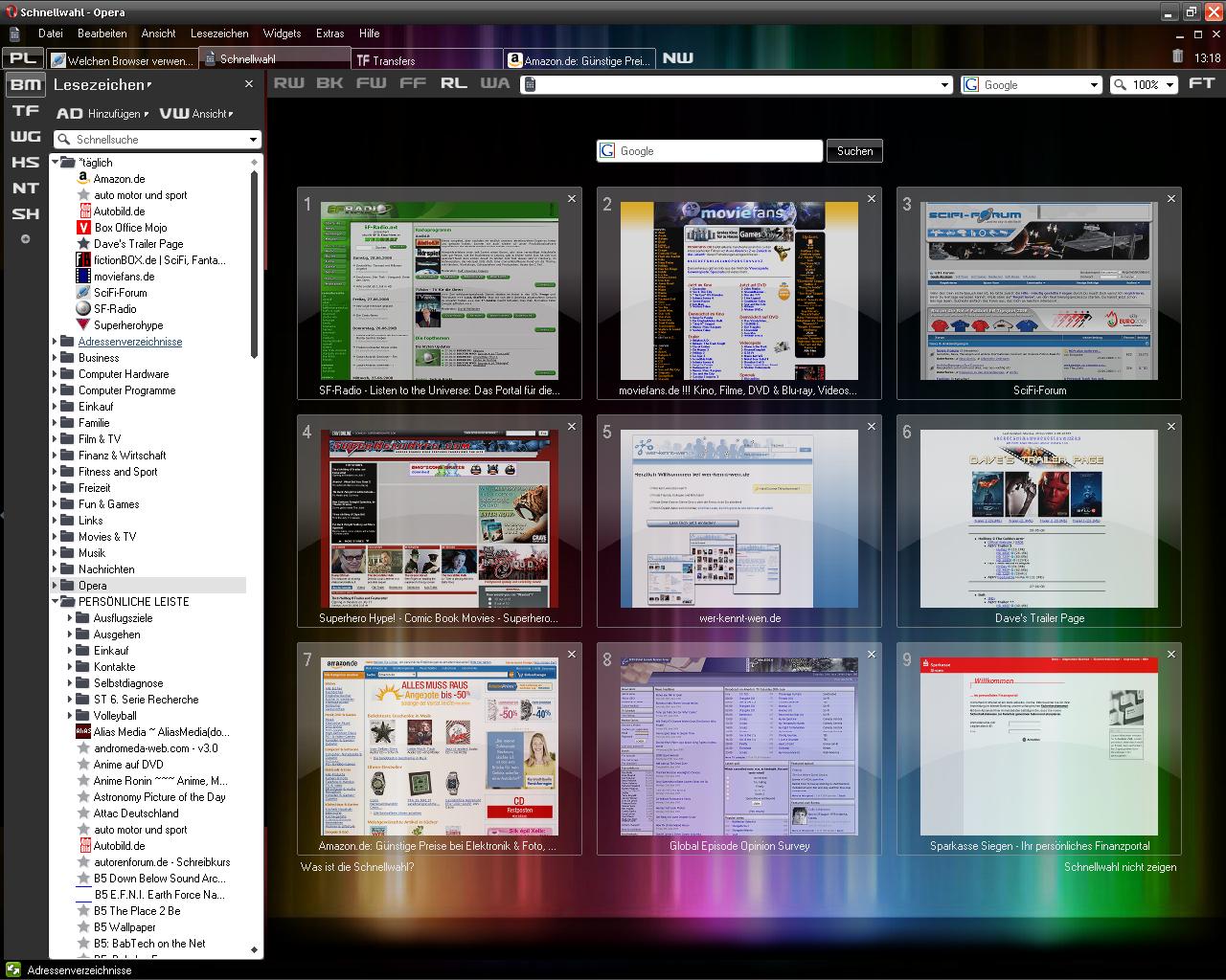 Und gerade deswegen zum Zweiten: Mit einer megakurzen Mausbewegung habe ich einen neuen Tab geöffnet und kann mit einem weiteren Klick per Schnellanwahl sofort die gewünschte Seite öffnen. Wozu also die persönliche Leiste. Brauchst Du die echt so sehr?