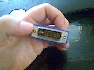 Das ist ein ganz normaler DVI-VGA-Adapter (der eigentlich auch bei der Grafikkarte bzw. dem neuen Rechner dabei gewesen sein sollte. Wenn nicht würde ich da nichts mehr kaufen)...man könnte jetzt sagen der Monitor taugt nichts weil man einen 1 Jahr alten Flachbildschirm eigentlich auch direkt über DVI anschließen können sollte, aber daran liegt's wahrscheinlich nicht.