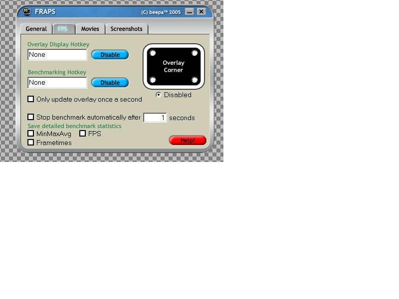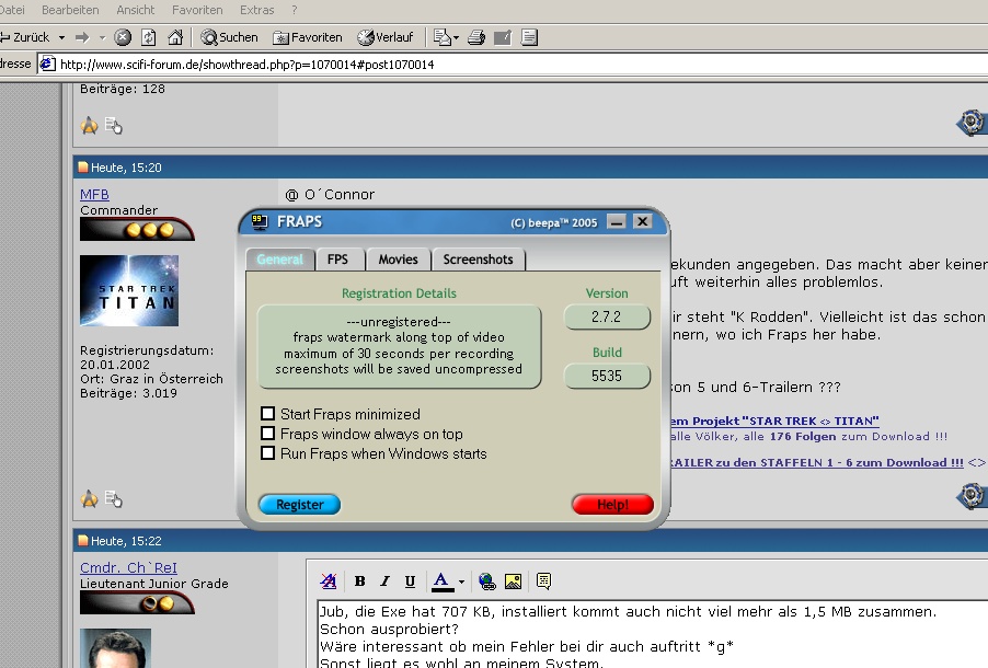 Was steht bei dir unter "General"? Beta Tester? Bei mir steht "K Rodden". Vielleicht ist das schon eine registrierte Version? Mensch, jetzt müsste ich mich nur noch erinnern, wo ich Fraps her habe.