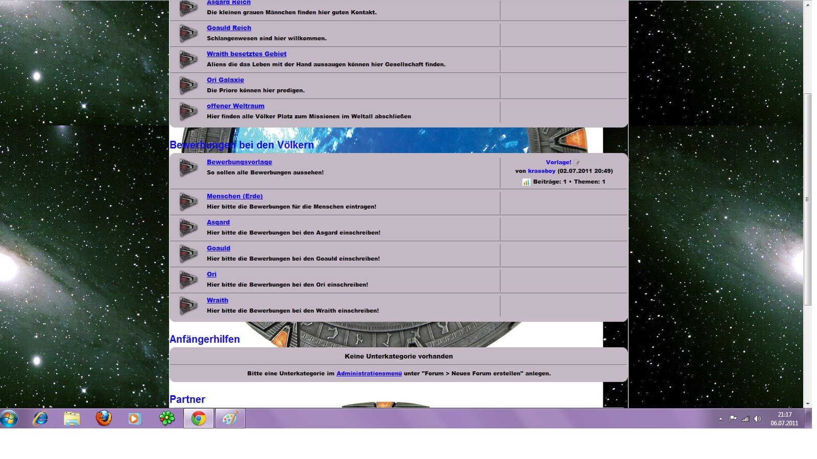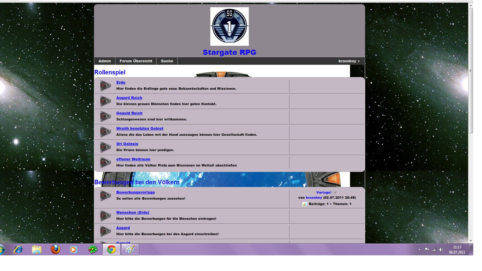 Sucht Ihr auch ein Stargate Rollenspiel? Ihr könnt mithelfen eines aufzubauen!! Helft uns das Spiel aufzubauen und spannend,kreativ und spontan zu gestalten. Die ersten 2 werden sogar zu Admins gemacht. Kommt zu uns und helft es aufzubauen.