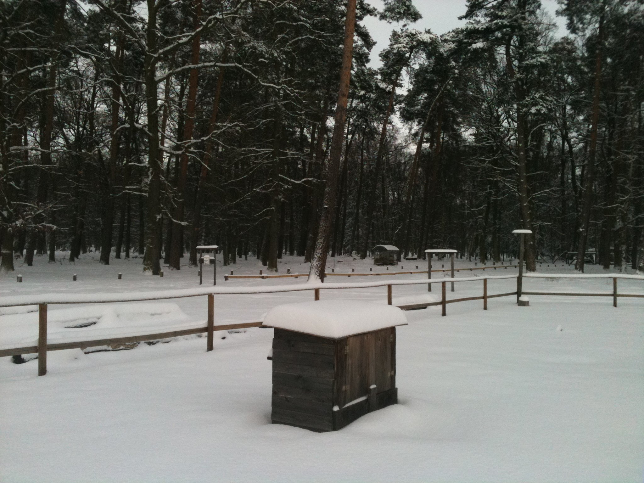 Nein, da kam ich heute nicht mal mehr mit meinem Jeep rein. Und die Dächer der Voliren mußte ich selbst freischaufeln, damit sie nicht einbrechen.