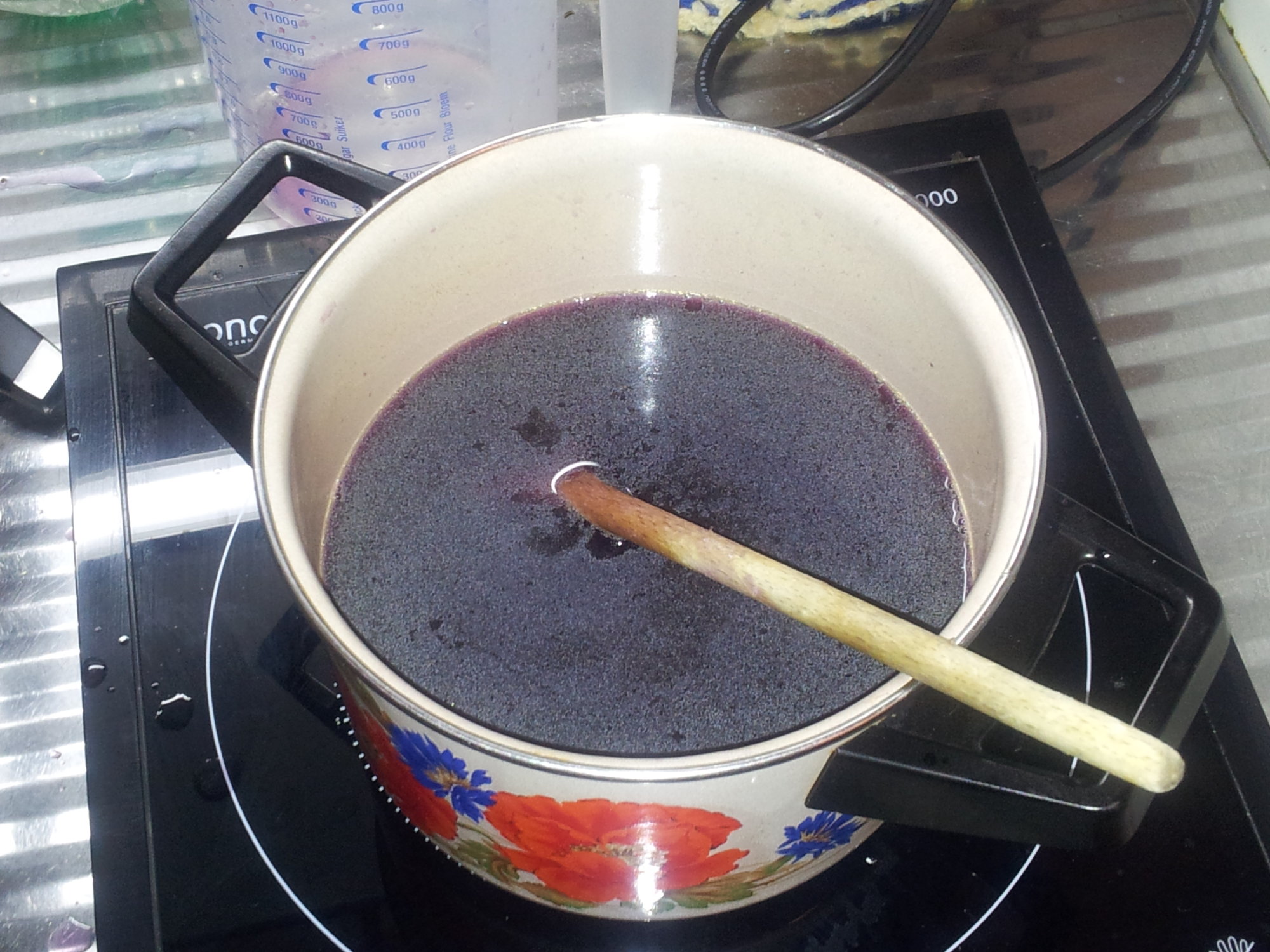 Ein Aspik aus Preiselbeersaft, Schattenmorellensaft, etwas Orangensaft kochen.