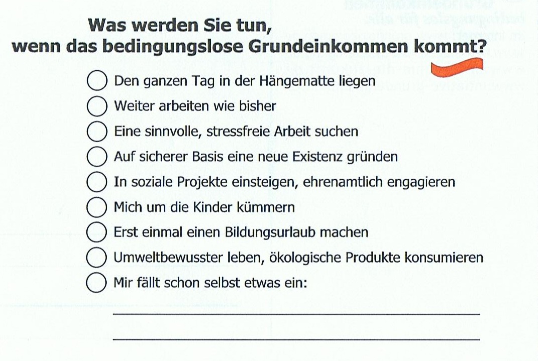 Is mir egal, wie hoch das Grundeinkommen ist, aber das Mindestarbeitseinkommen muss dann um mindestens 80 % höher sein, natürlich auch mit allen Förderungen, sonst ist das sozial ungerecht