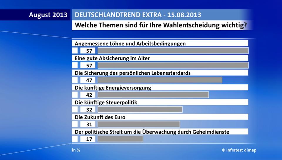 Der Wahl-O-Mat wird zwar erst am 22. August (exakt einen Monat vor dem Wahlgang) veröffentlich, doch bin ich gerade über eine nicht uninteressante Deppendorfs Woche gestolpert: Deppendorfs Woche: Ein Wahlkampf, der keiner ist | tagesschau.de