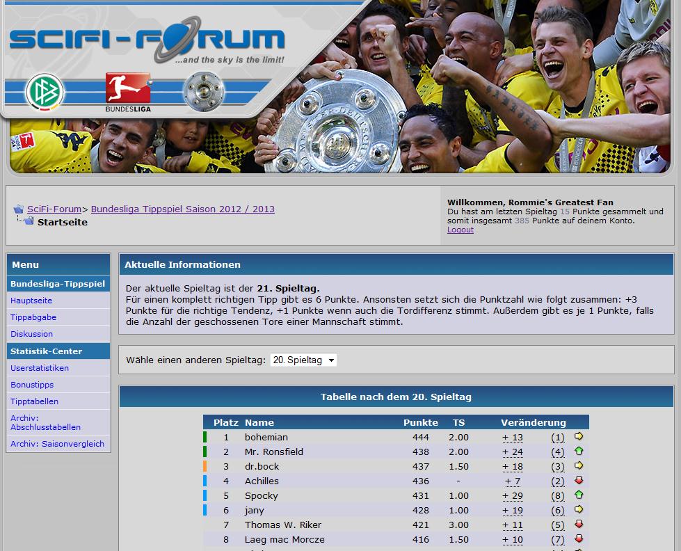 Hast aber auch Glück gehabt, dass das Tippspiel nach der letzten Runde noch nicht freigeschalten war und ich dadurch dann den ersten Spieltag nicht getippt habe, sonst wärens bei mir noch 4 Punkte mehr gewesen.