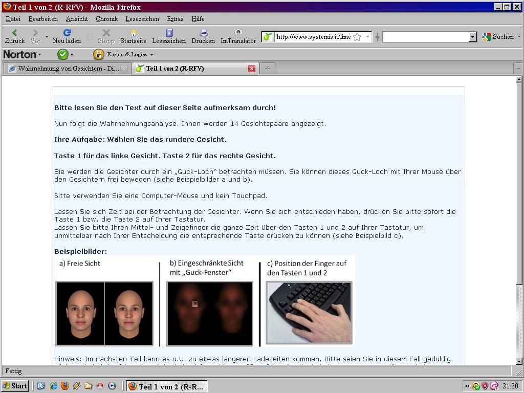 ich würde mich sehr über Unterstützung bei meiner Diplomarbeitsumfrage freuen. Es geht dabei um die Wahrnehmung von Gesichtern und dauert ca. 10-15 Minuten.
