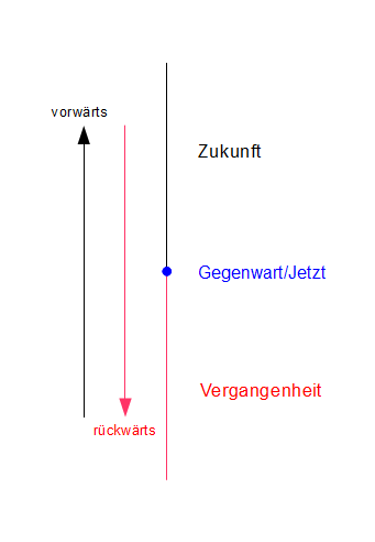 vorwärts - jetzt und zurück, wobei wir höchstens JETZT wahrnehmen bzw wir uns in einer vorwärtsbewegung befinden aber eben nur JETZT