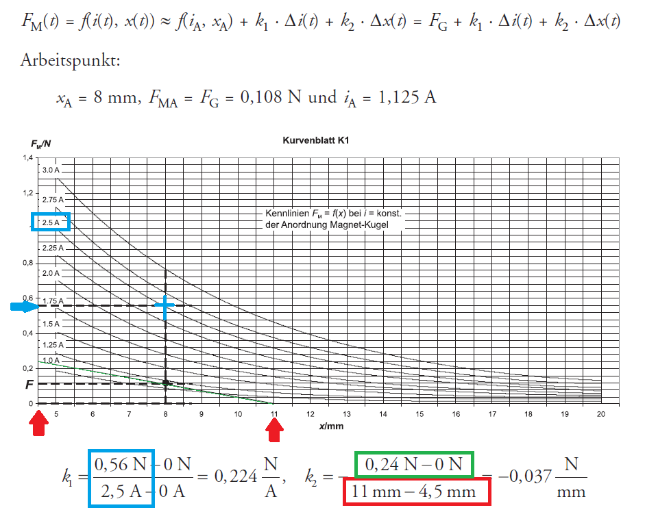 Meine Frage ist, woher die grünen Werte bzw. diese grüne Linie durch den Arbeitspunkt eigentlich kommt und wie die Werte des Nenners von k2 damit zusammenhängen, sofern die überhaupt zusammenhängen und das nicht schon nen Denkfehler von mir ist.