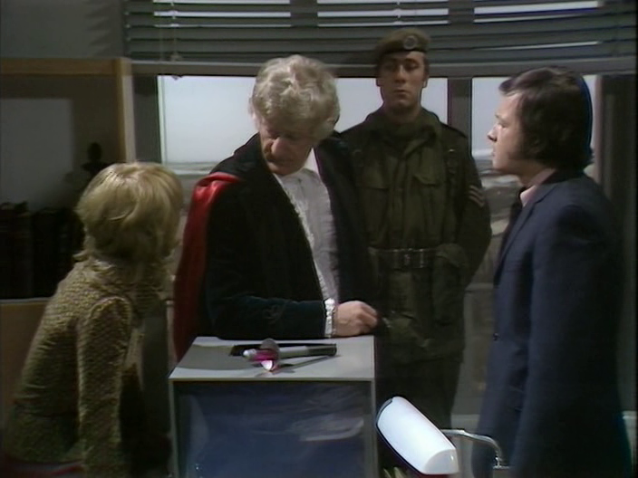 • Companions: Jo Grant, Brigadier, Sergeant Benton, Mike Yates