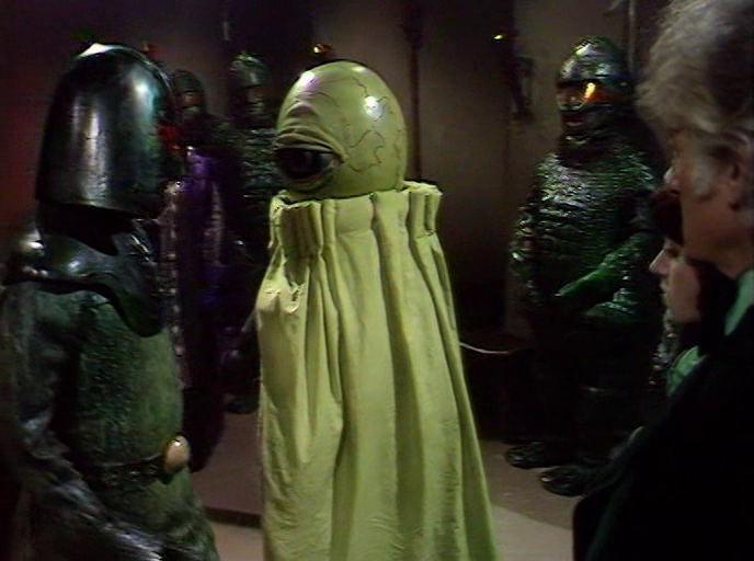 Inhalt: Die die TARDIS kehrt 50 Jahre nach ihrem letzten Besuch zum Planeten Peladon zurück, aber der Planet ist im Aufruhr. Ein Krieg ist im Gange, doch die Minenarbeiter wollen wichtige Erze nicht abbauen, denn der Geist eines Monsters irrt tötend durch die Minen.