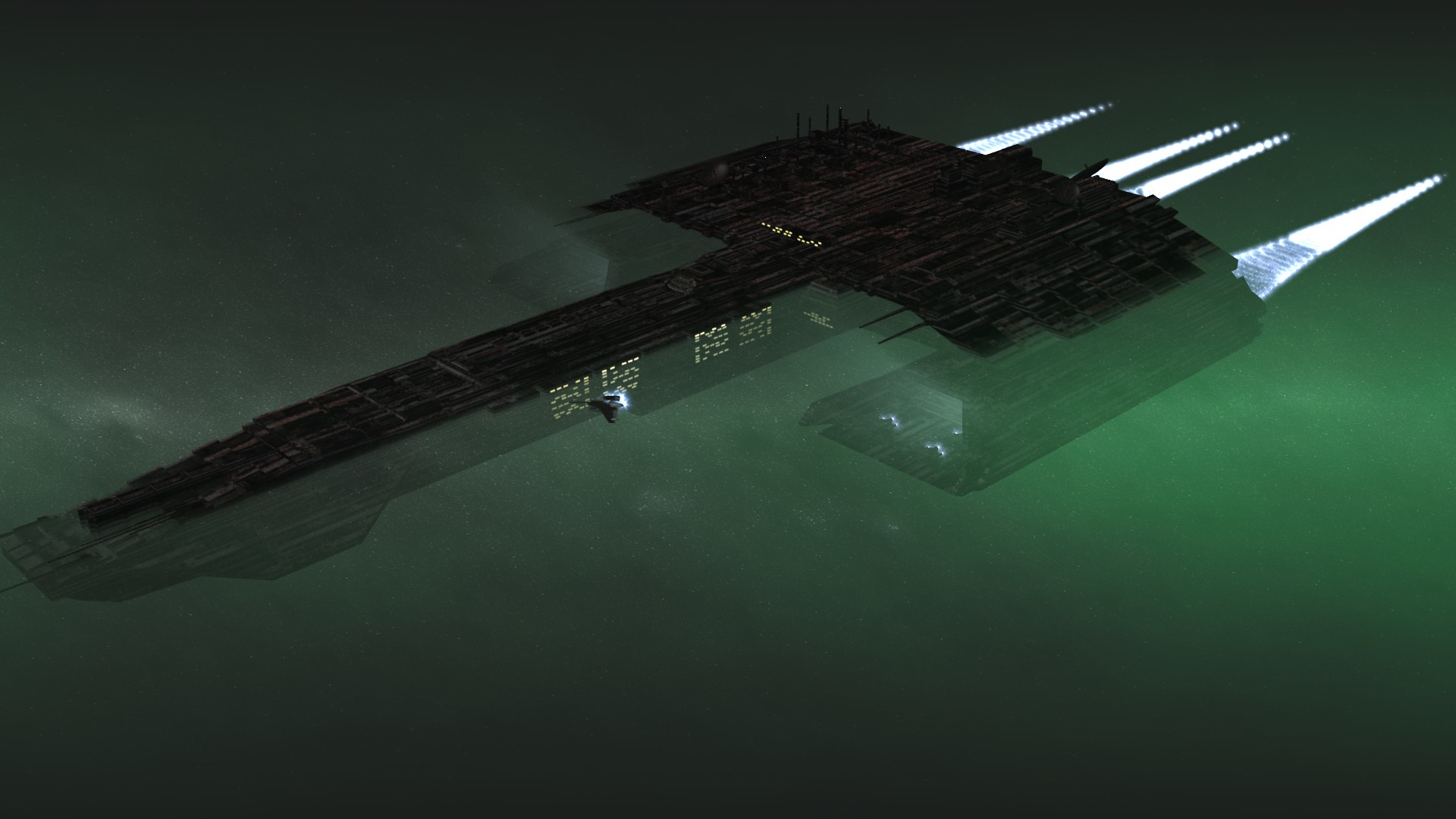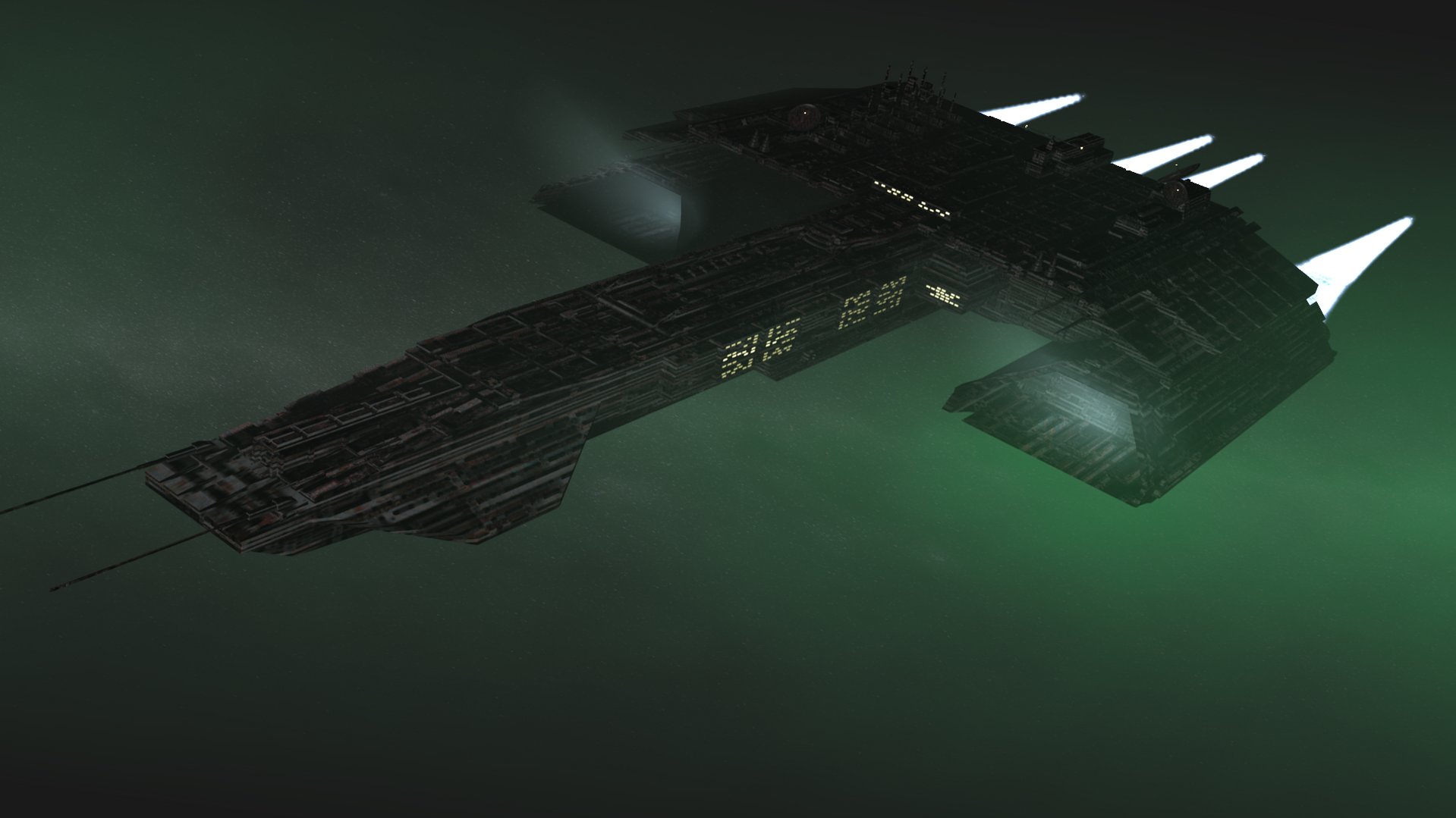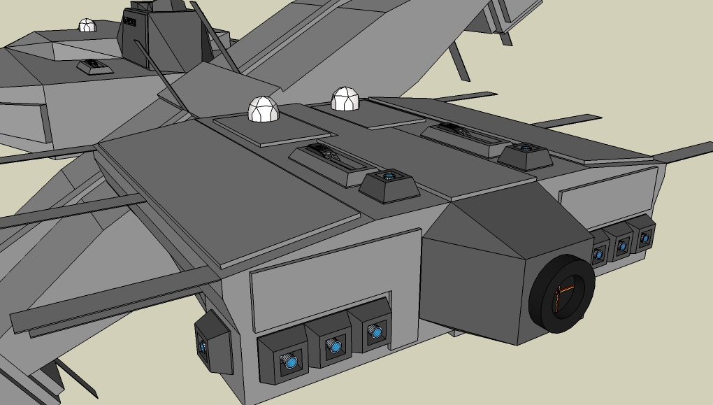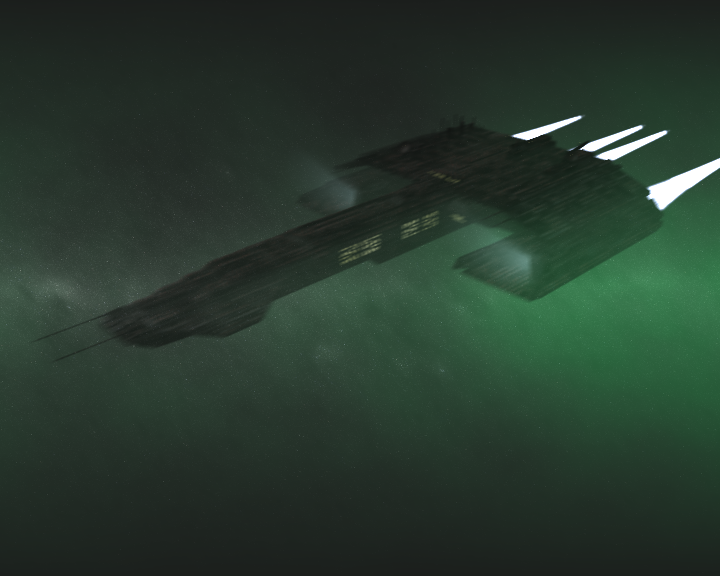 in der Vogelperspektive sind da auf der Oberseite jede Menge heller weißer Punkte auf den senkrecht stehenden Flächen zu sehen, sind das beleuchtete Fenster? Verglichen mit den um das Schiff fliegenden Jägern sind die dafür aber irgendwie viel zu klein (ich nehme an, das sind nur Ein-Mann-Jäger?). Und einer der Jäger scheint ja aus dem dunklen Schacht links am Schiff herauszukommen, so als ob das eine Startrampe wäre. Dafür wirkt der Schacht aber viel zu dunkel, so als ob das Schiff ein Wrack wäre und der Jäger es gerade inspiziert hat.Zitat von Predy Beitrag anzeigenTja, wenn diese verdammten Texturen nur nicht so kompliziert wären!