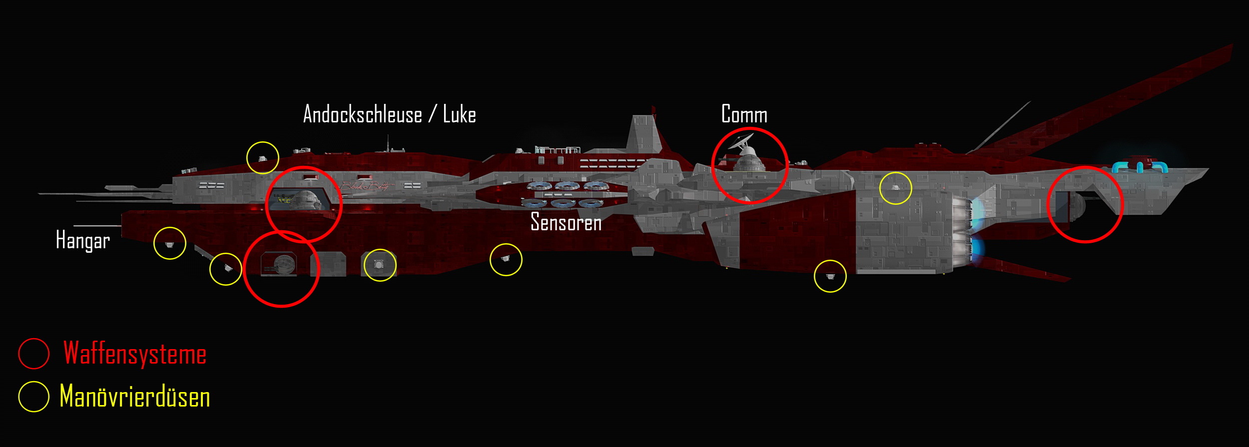 Da in meinem Schiffsentwurf die Implulskrümmer frei ausrichtbar sind (entsprechende Krümmerspulen sind hinter den Impulskühlmodulen) sind Korrekturdüsen eigentlich unwichtig).