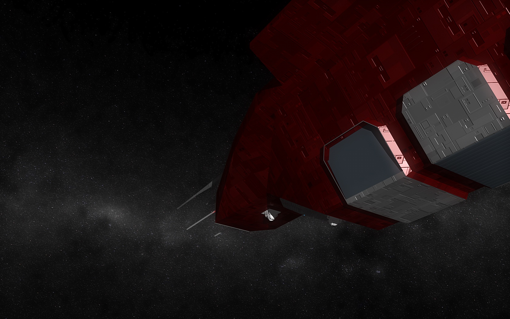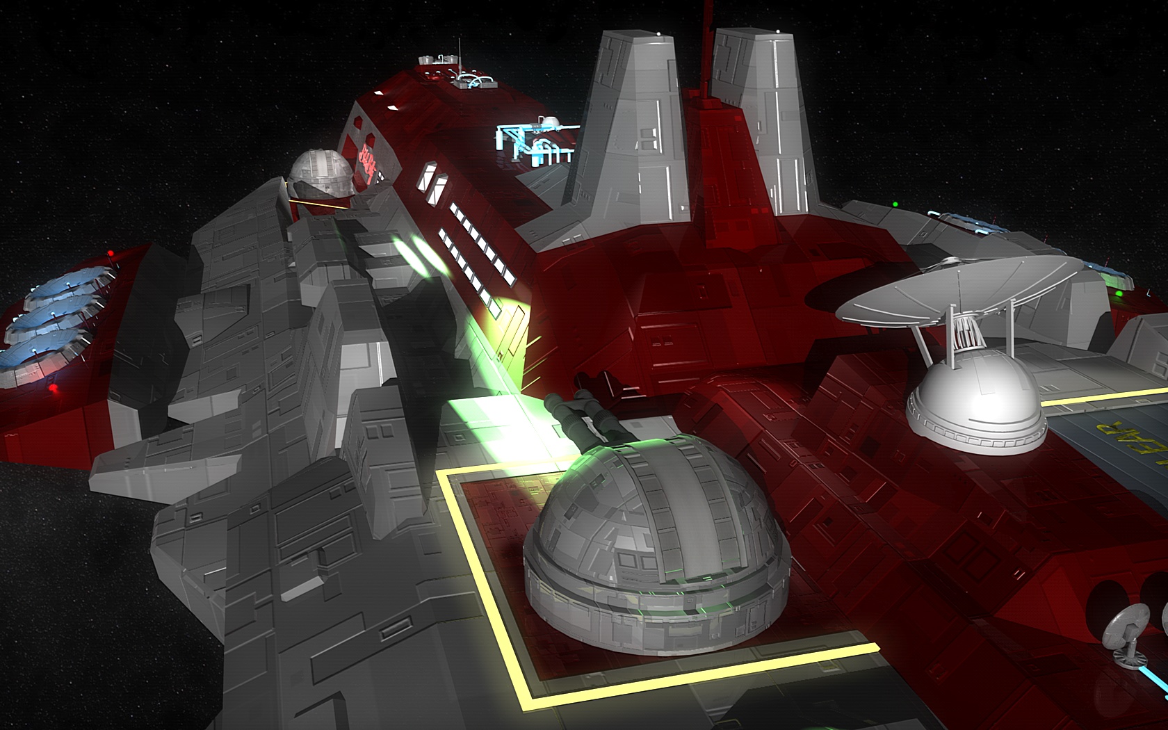 Ach so: Falls jemand nach einer Seiten- oder Draufansicht fragen sollte: Ich habe aus Effizienzgründen natürlich nur den Teil des Schiffs modelliert, der auch zu sehen ist.