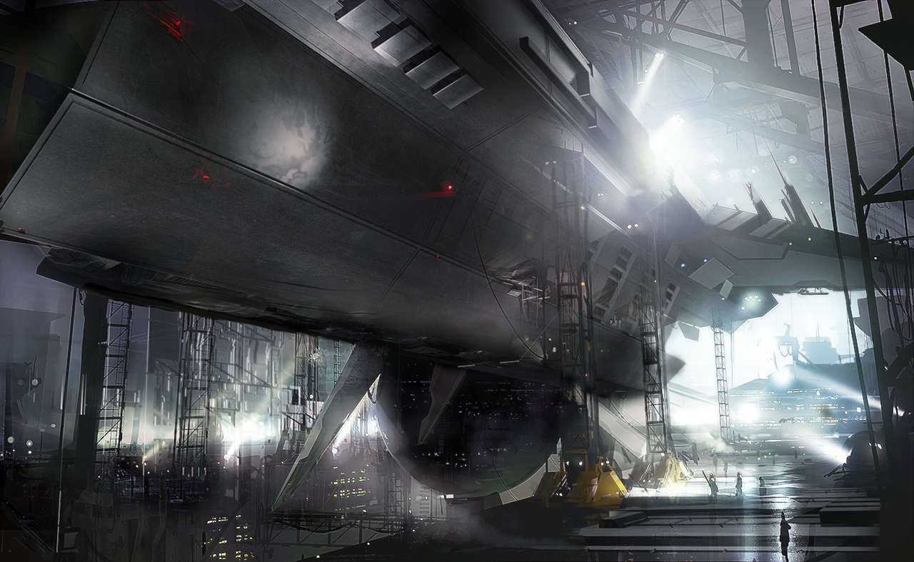 Hier auch mal wieder eine Arbeit von mir. Dem Kunden ging es um einen stimmungsvollen Raumhafen: Die Wirkung sollte steril aber auch irgendwie (ich liebe es, wenn sich Auftraggeber so konkret ausdrücken) schmutzig sein. "Eben Licht und Schatten - Sie verstehen?" Natürlich.