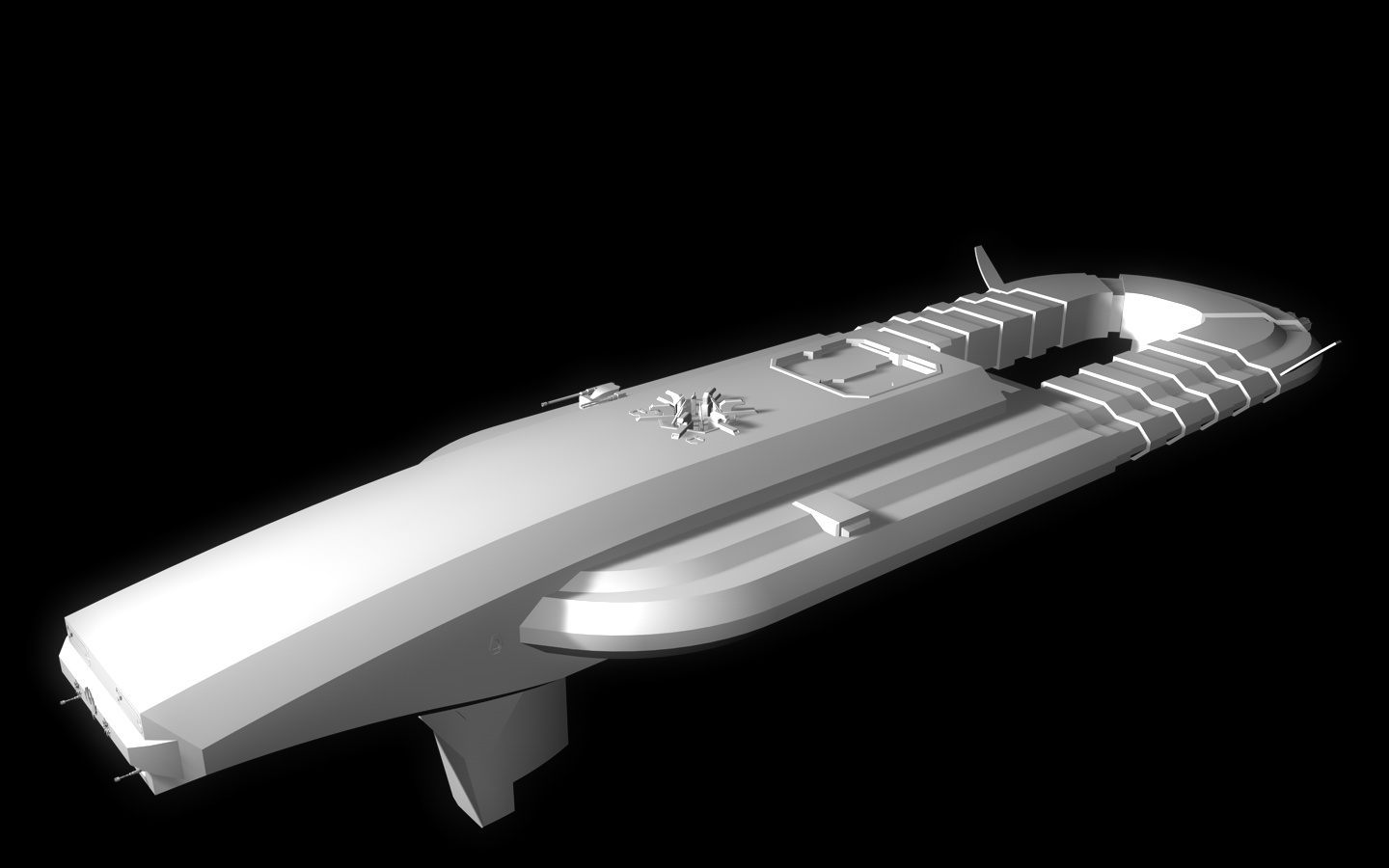(Warnung vor der Schleimspur *Schild schwenk*) ist... die Abschussvorrichtungen wirken recht groß im Verhältnis zu den beiden Magazinen. Was wird er abfeuern, werdens Raketen/Raumbomben/Torpedos sein? Weil er dann wohl je nach länge der Teile nicht allzuviel davon tragen könnte. Sollten die Projektile ebenso lang sein wie die Magazine bzw annähernd so lang, dann würden wohl nur 3 Bomben auf jeder Seite reinpassen, 4 wenn man noch eins direkt in der Abschussvorrichtung parkt (Pi mal Daumen geschätzt ^.^).