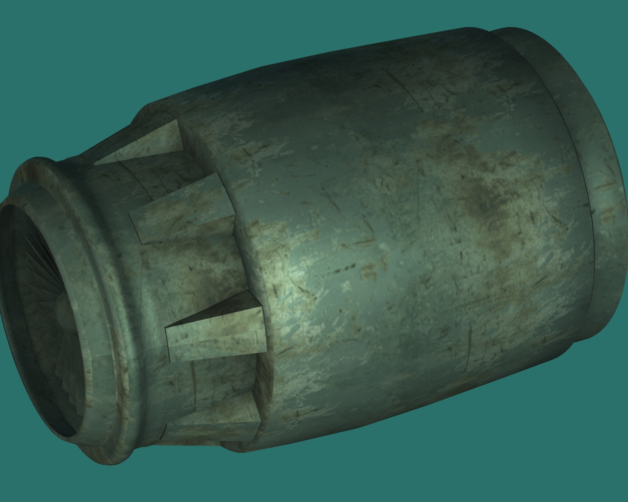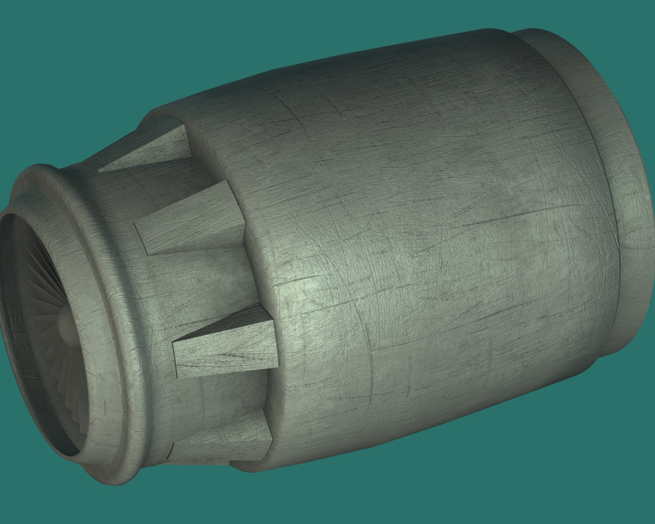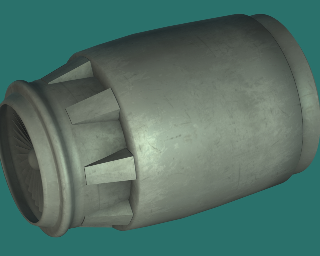 So, hier mal an meinem Testmodell, die unfertige und nicht detaillierte Turbine, was ich meinte, mit Kratzern.